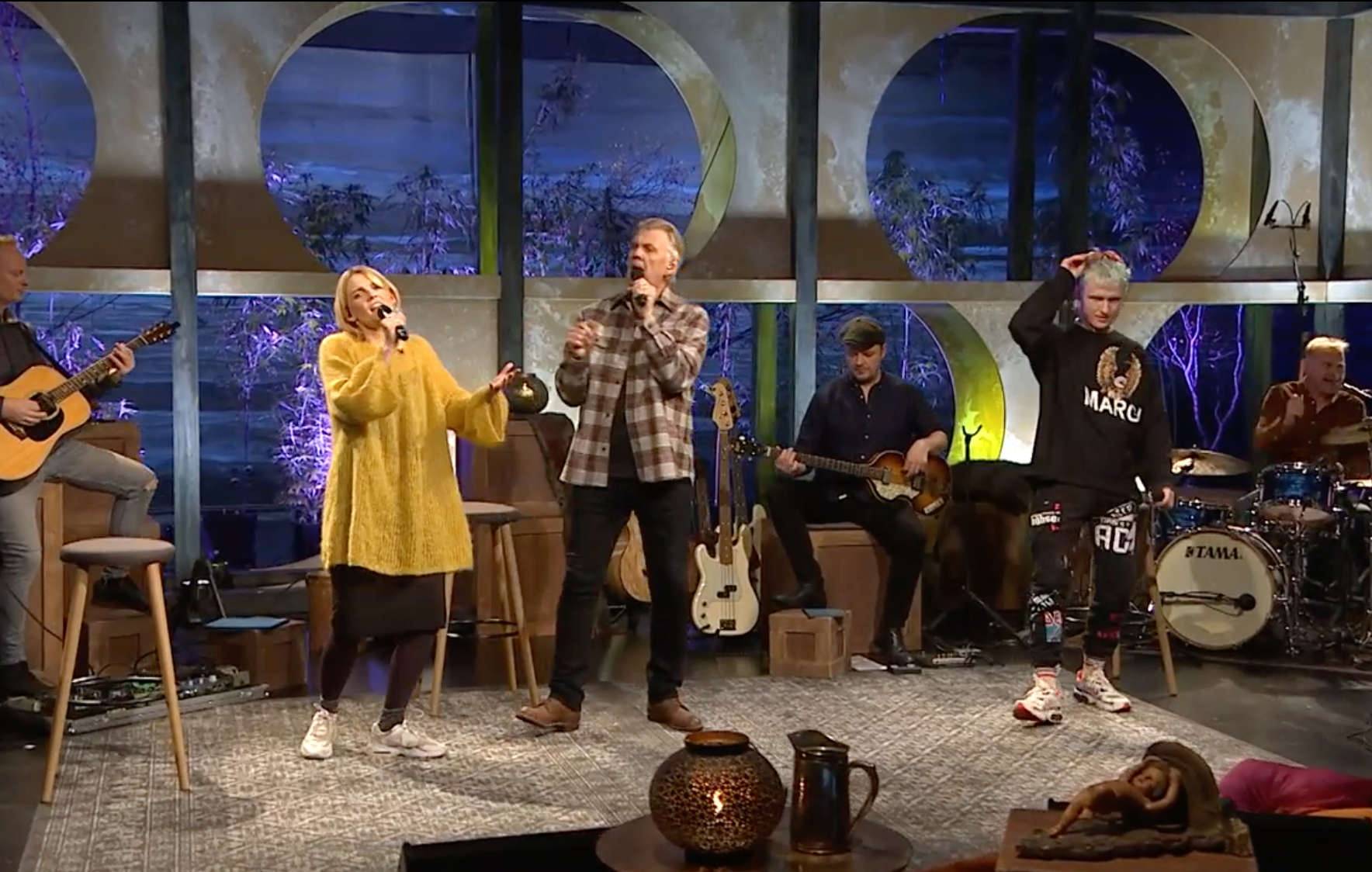 Helgi Björns fékk þau Vigdísi Hafliðadóttur söngkonu hljómsveitarinnar Flott og Sigurbjart Sturlu leikara, einnig þekktur sem Sturla Atlas, til að taka með sér Hljómalagið Lífsgleði í þættinum Það er komin Helgi, síðasta laugardagskvöld.