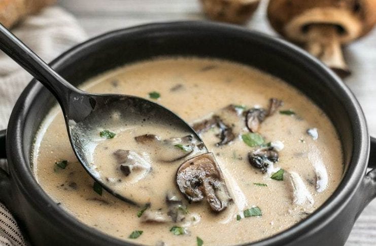 4. Nú má lækka hitann ennþá meira og bæta rjómanum saman við. Þegar það er búið má smakka þetta til með salti og pipar. Bætið steinselju saman við ásamt restinni af timjan. Berið síðan fram með góðu brauði.