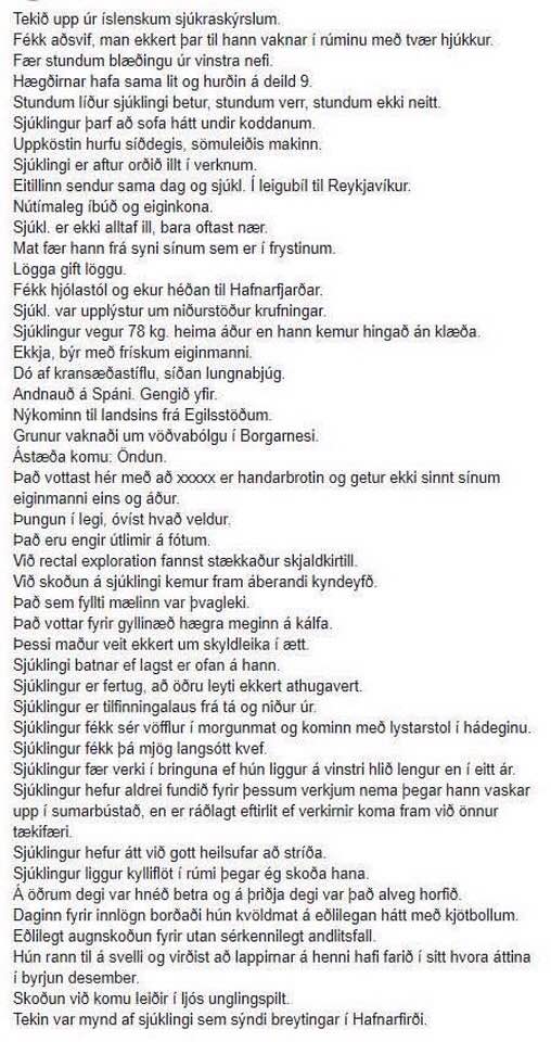 Því að hér eru 44 bráðfyndnar setningar sem eru teknar upp úr íslenskum sjúkraskýrslum: