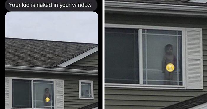 Það var hinn 2ja ára gamli Dax sem stóð þarna kviknakinn út í glugga og rétt áður en myndin var tekin þá var hann að vinka henni Lauru.