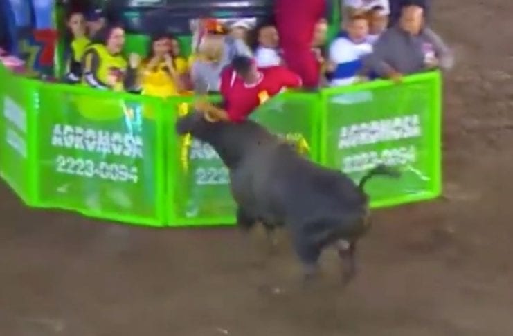 Þessi gæi ákvað að henda sér í hringinn með mannýgum nautum – og sjá hvort það myndi ekki blessast bara.