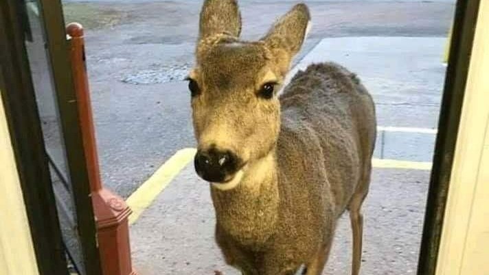 Eigandinn ákvað að gefa dádýri sem mætti á svæðið nokkrar kexkökur – og áður en hann vissi af var öll fjölskyldan mætt á svæðið: