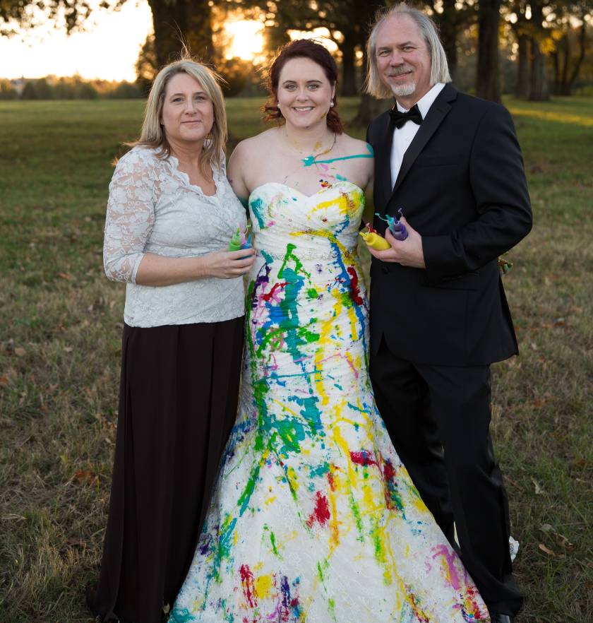 Hún ákvað að fagna brúðkaupsdeginum þrátt fyrir áfallið og eyddi deginum með ástvinum og fjölskyldu – til gamans þá rústuðu þau brúðarkjólnum.