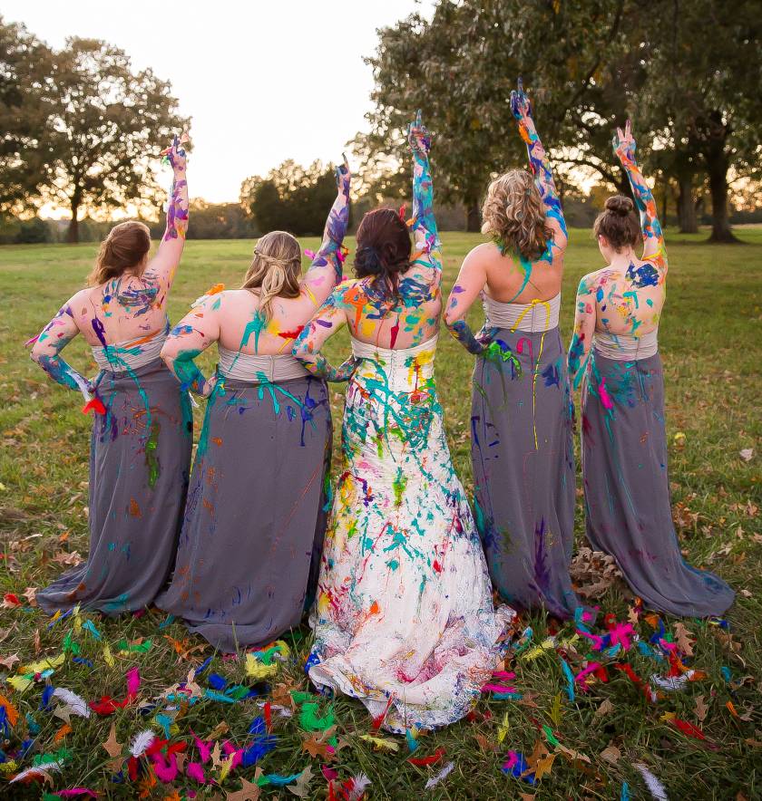 Vinkonur hennar tóku vel í framtakið og voru meira en til í að mæta í einnar konu brúðkaup!