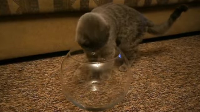 Þessi þráði ekkert heitar en að búa í fiskabúri – og ánægja hans með sjálfan sig þegar hann loksins komst ofan í kúluna verður ekki mæld á krúttskalanum:
