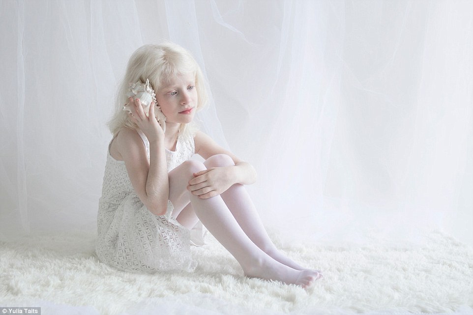 Ljósmyndarinn Yulia Taits tók myndir af albínóum í hvítum bakgrunni til að fanga ótrúleg litbrigði þeirra.