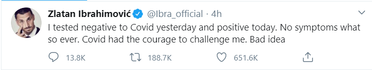 (Covid er ekkert til að grínast með en þetta var samt skemmtilegt útspil hjá Zlatan sem var vert að minnast á í grein.)